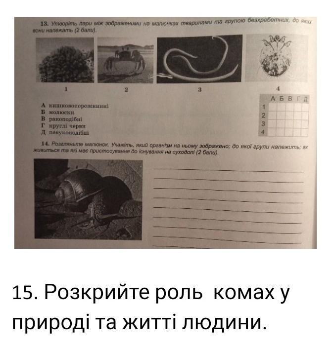 тематичні контрольна робота з теми Різноманітність тварин (безхребетні тварини) 1 варіант