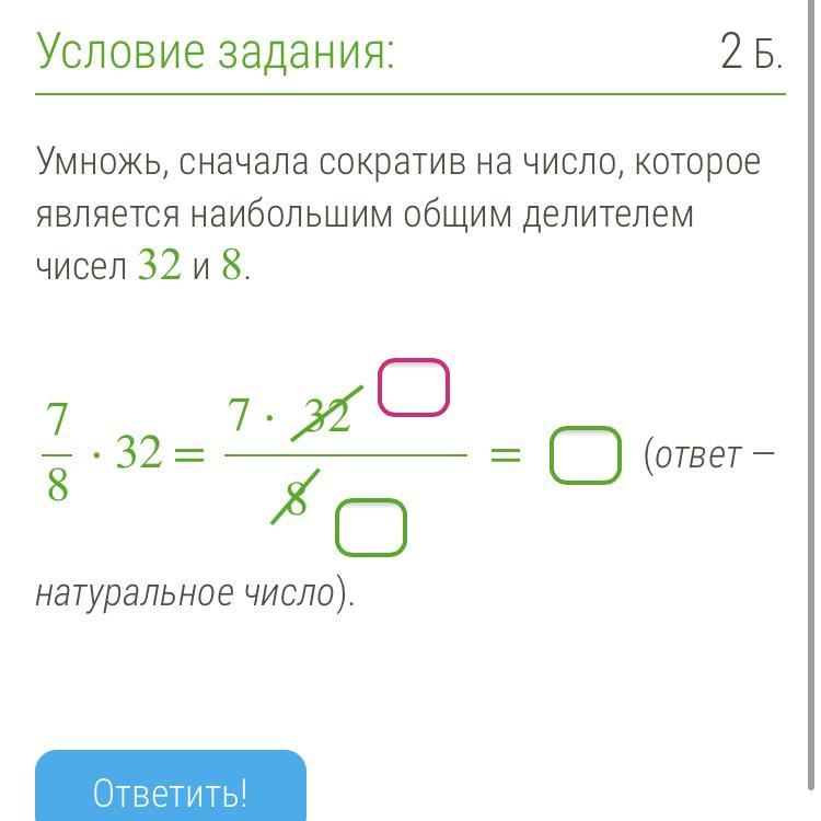 множь, сначала сократив на число, которое является наибольшим общим делителем чисел 32 и 8.