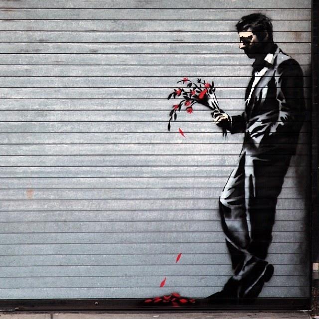 на данной картине мы видим одинокого мужчину, он стоит в строгом костюме и направив взгляд вниз задумывается о чем то уходящем далеко в его сознание. произведение наводит нас на разнообразные мысли , и мы четко чувствуем груз одиночества персонажа. в его руках осыпающийся букет из алых цветов , и былая красота этих прекрасных растений давно померкла .