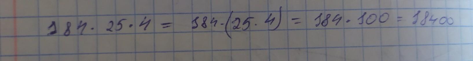 удобнее будет умножить сначала 4 на 25 так получится 100, и затем уже умножать 100 на 184 будет гораздо легче.