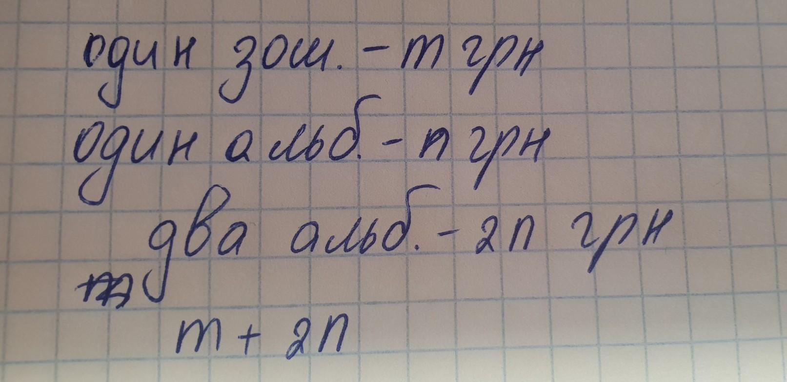 один зошит коштує m грн а один альбом для малювання n грн Скільки гривень коштують 1 зошит і 2 альбоми разом