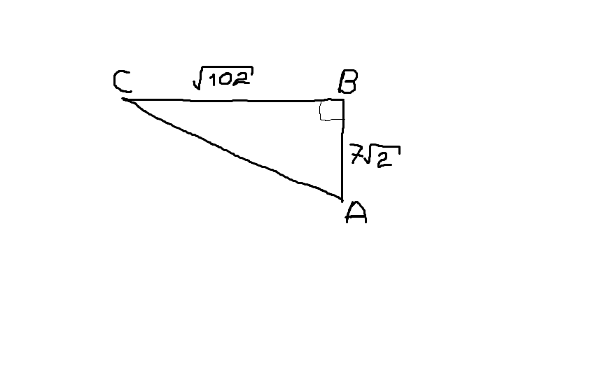 cosA= frac{AB}{AC} =frac{AB}{ sqrt{AB^2+CB^2} } =frac{7 sqrt{2} }{10 sqrt{2} } = frac{7}{10}