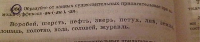 воробьиный, шерстяной, нефтяной, звериный, петушиный, львиный, земляной, лошадиный, полотняный, водяной, соловьиный, журавлиный.