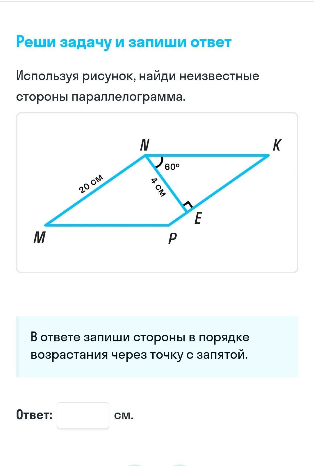 MN=PK=20см(Противоположные стороны равны в параллелограмме)