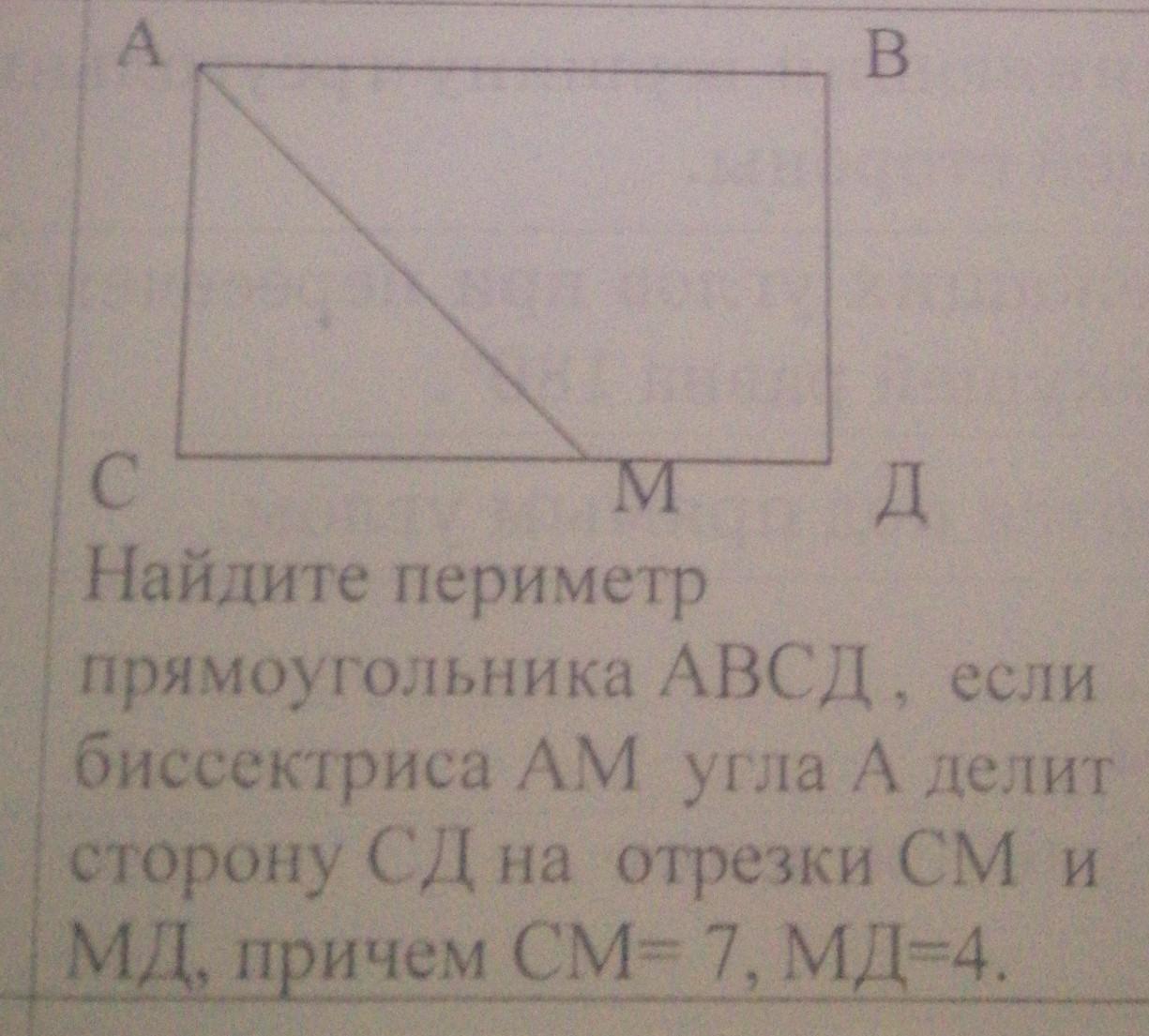 Нам известно свойство параллелограмма - у него противоположные стороны равны, отсюда следует => AB = CM + MD = 7 + 4 = 11.