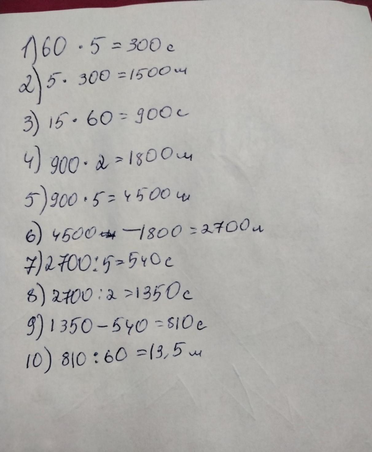 Из деревни в город выехал велосипедист со скоростью 5 м/с. Через 5 минут после выезда велосипедиста из деревни в том же направлении отправился пешеход со скоростью 2 м/с. В момент выхода пешеход написал велосипедисту сообщение, чтобы тот вернулся. Велосипедист прочитал его через 15 минут после отправки сообщения и тут же развернулся.
