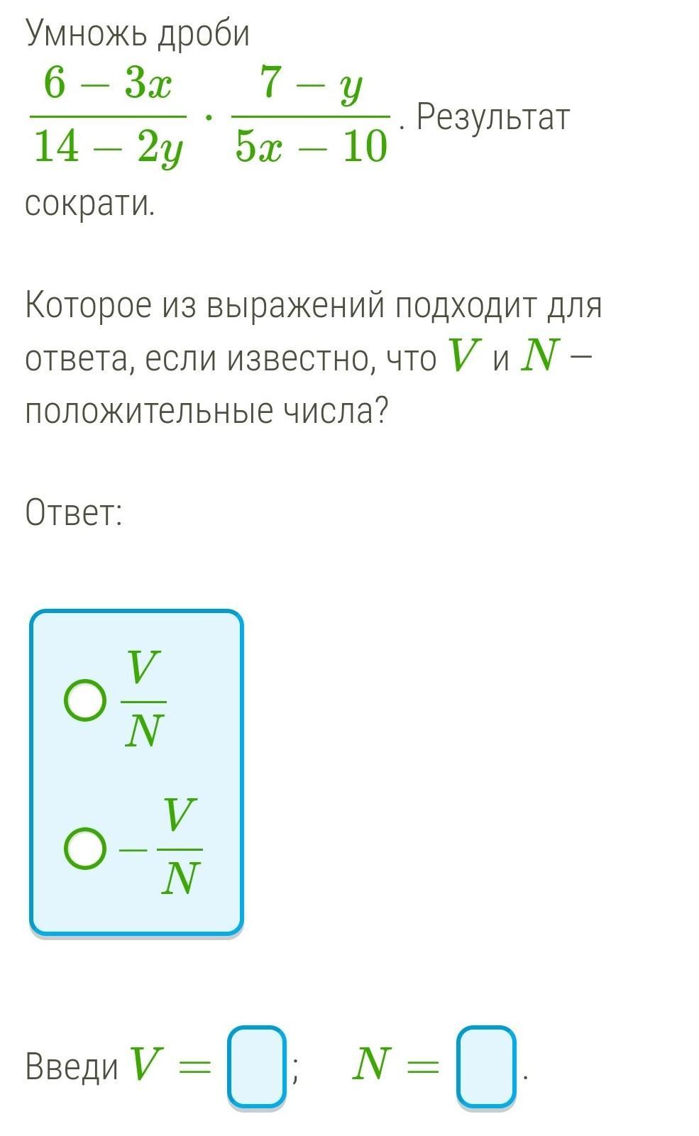 - V/N; -3/10; V= 3, N = 10. Не уверена, но пусть так.