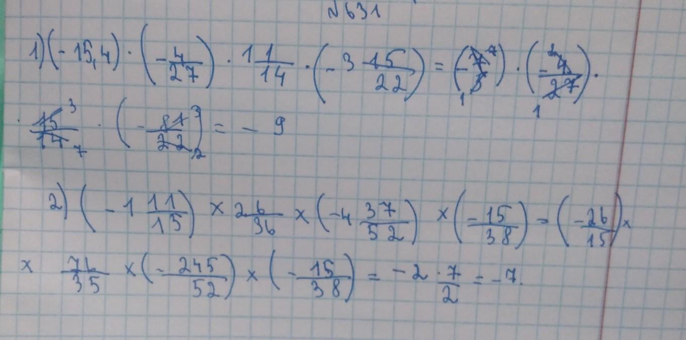 631. Вычислите: . 4 15 1) (-15,4) -319) 27 14 22 15 2) (-1) 6 2 35 37 -42 52 15 38