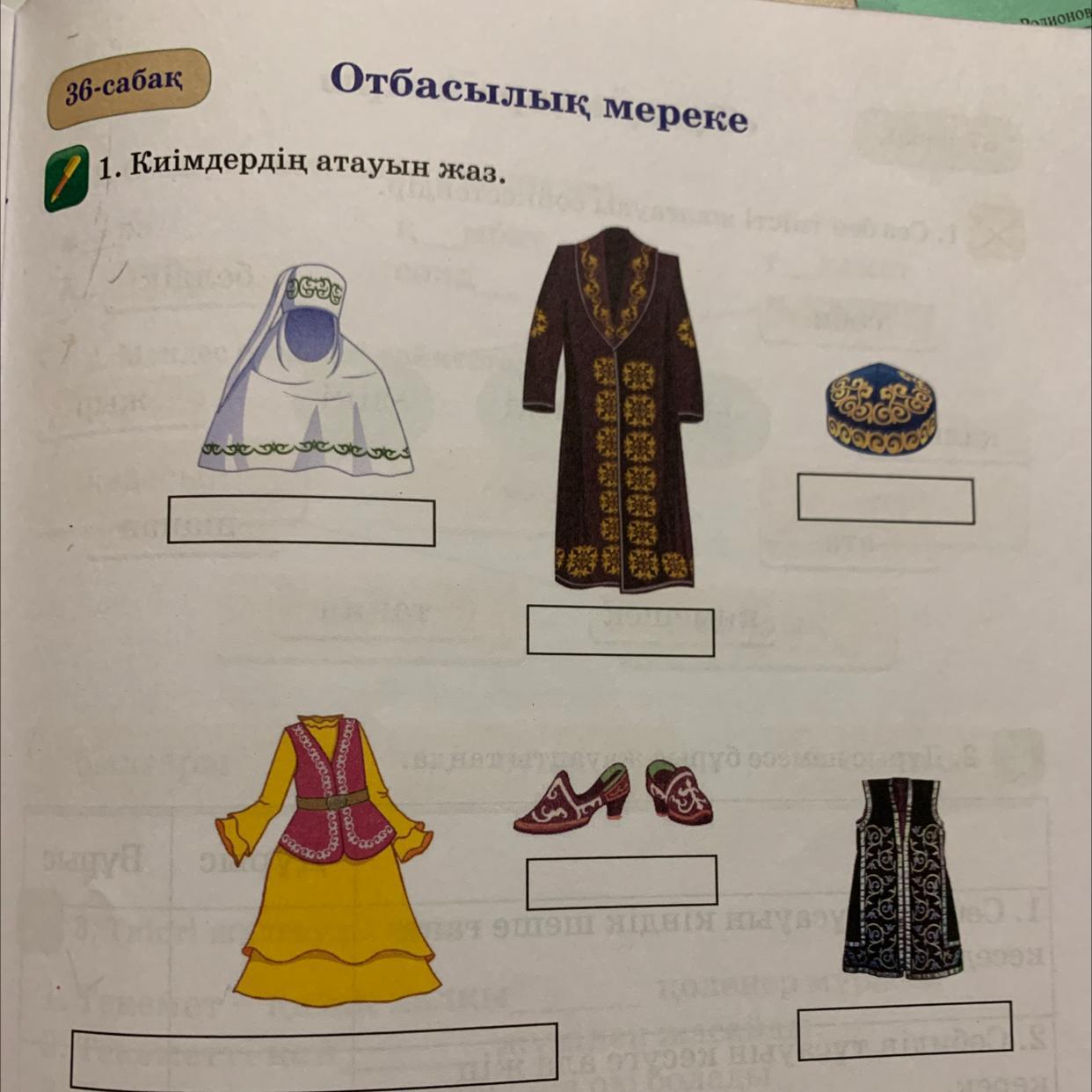 2 шапан 3 тақия 4 көйлек 6 қамзол