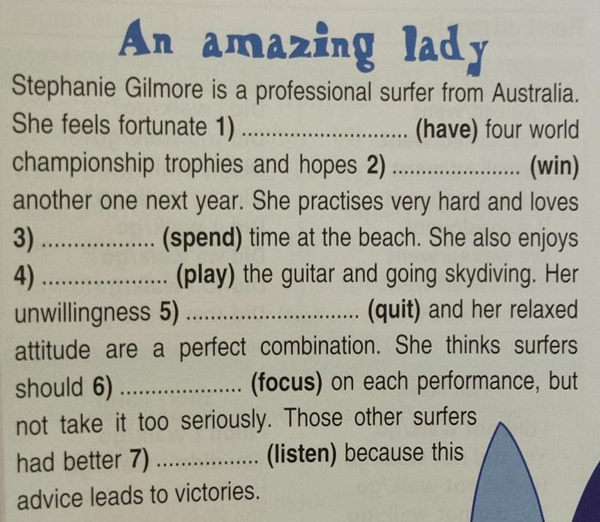 having , wining, spending , playing , quitting, focusing , listening ) если не правильно прости