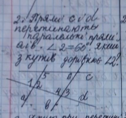 Ответ: углу 2 равен угол 3 (потому что они соответствующие) и угол 6 (потому что они внутриненакрестлежащие)