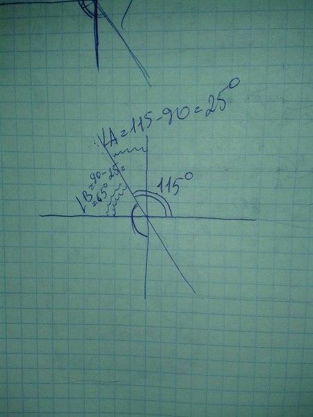 Находим два тупых угла, отмечаем один из них как 115 градусов, следовательно угол А = 115-90=25 градусов.