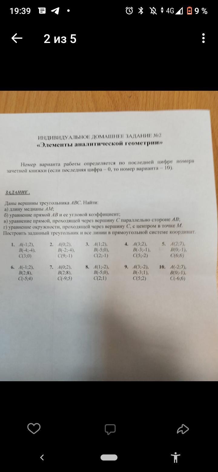 г) уравнение окружности, проходящей через вершину С(-5;4), с центром в точке М.