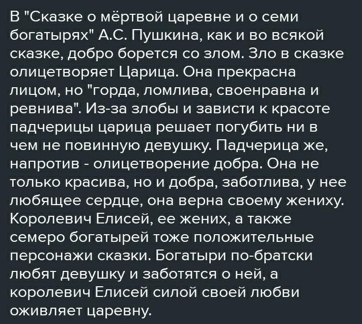 В " Сказке о мёртвой царевне и семи богатырях" А. С. Пушкино добро противостоит злу.