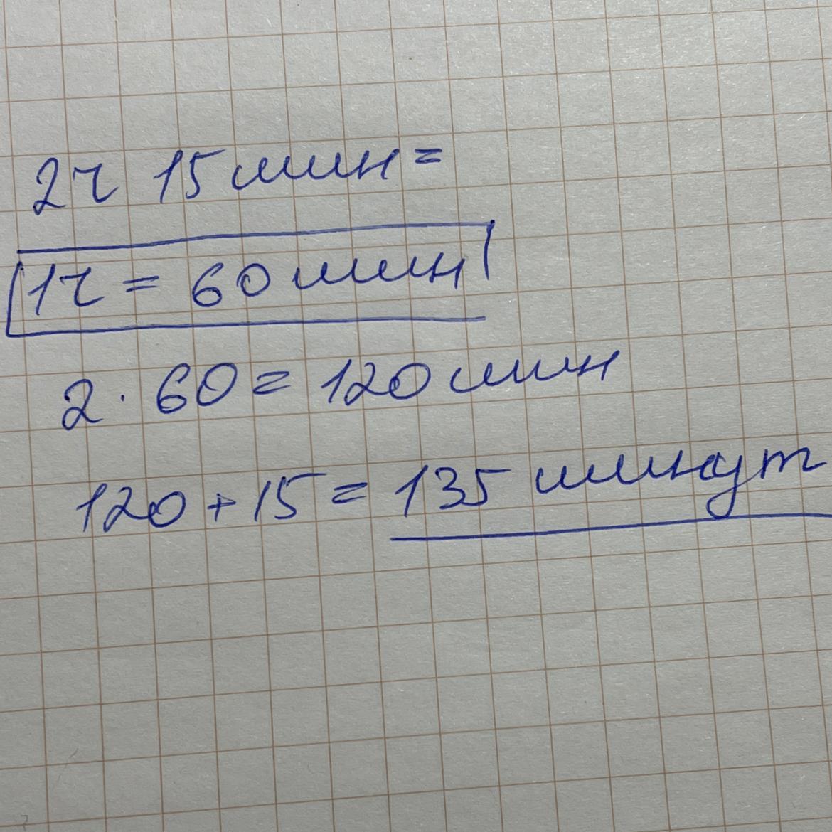 135 минут, переводим сначала два часа, потом прибавляем 15 минут и готово