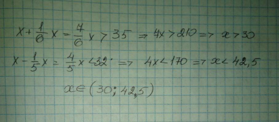 якщо до деякого натурального числа додати його п'яту частину , то сума буде більшою за 30. Якщо від даного числа відняти його третю частину , то різниця буде меншою від 24.