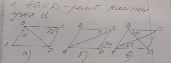 в) ∡А=25*2=50°, ∡В=(180-50)=130°, ∡ДВС=130/2=65°.