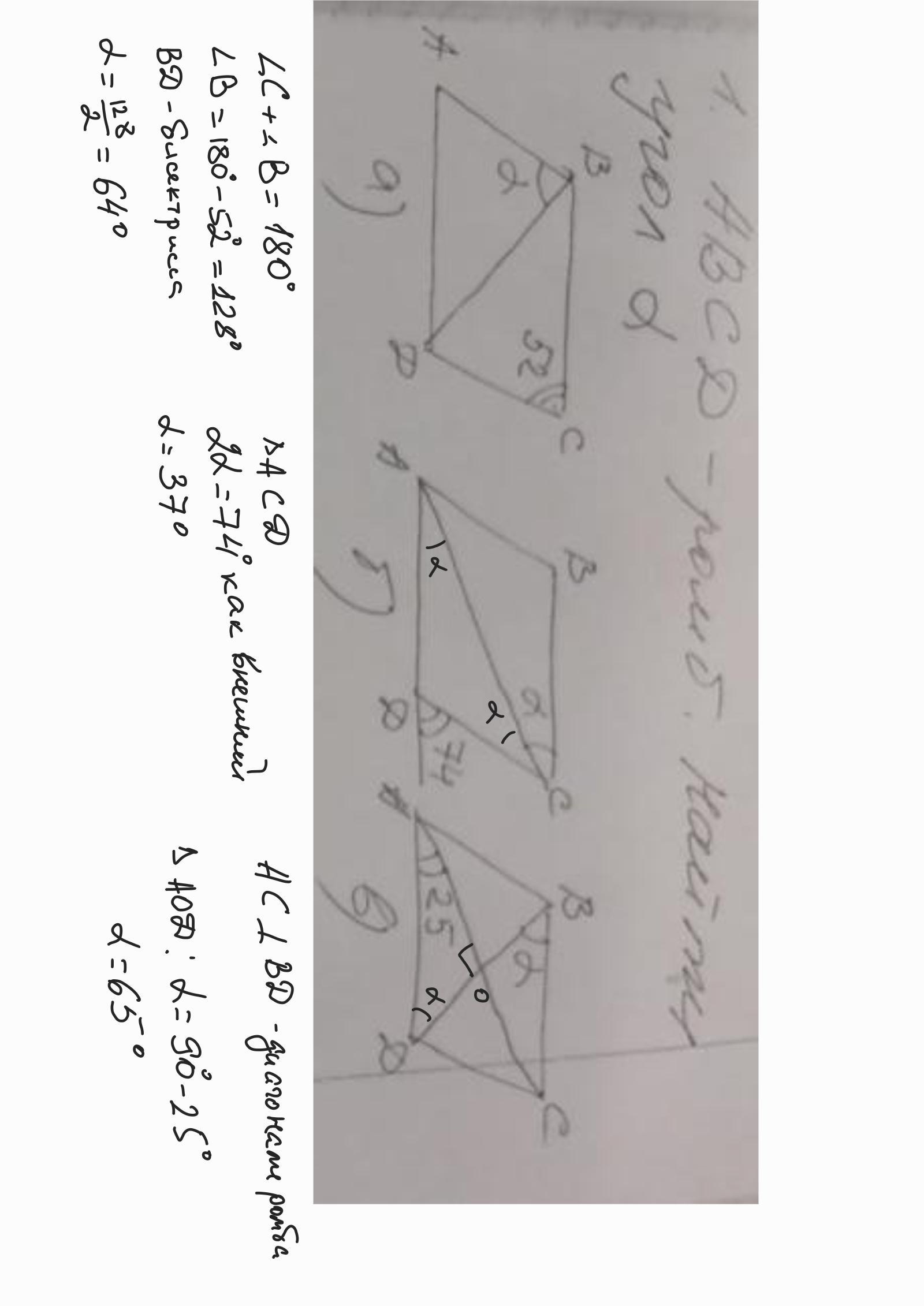 угол В=(180-52)=128°, ∡ДВА=128/2=64°.