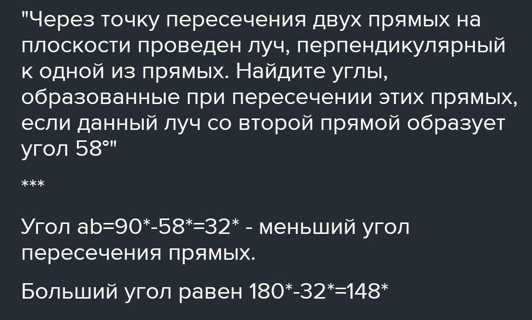 9. Через точку перетину двох прямих на Площині промінь, перпендикулярний до однієї з прямих. Знайдіть кути, утворені при перетині цих прямих, якщо даний промінь з другою прямою утворює кут 38º.