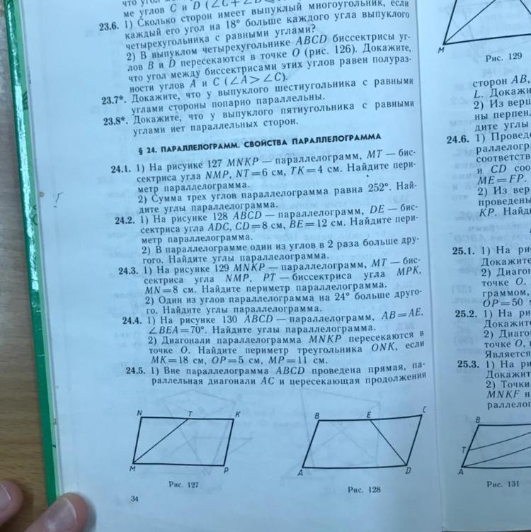 насколько мы знаем, сумма внутренних углов параллелограма равна 360°, значит 360°-252°=108° это третий угол, назовём его А.