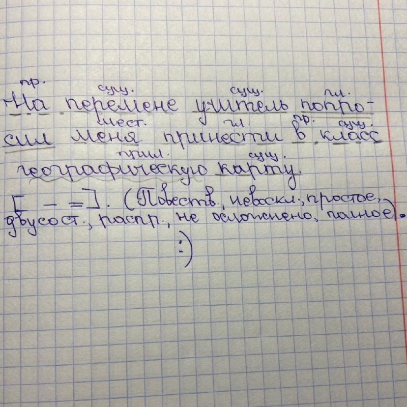 На перемене_._._ учитель__ попросил== меня_ _ _ принести_ _ _ в класс_._._ географическую~~ карту_ _ _ .