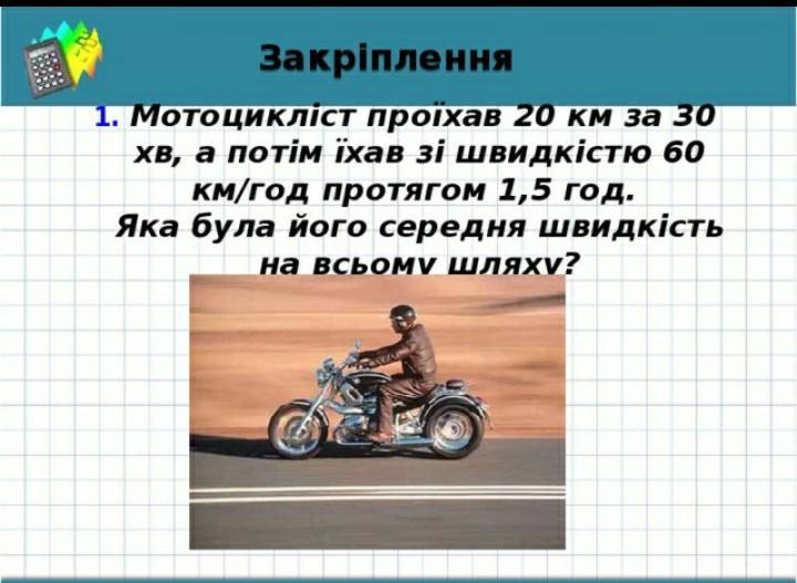 средняя скорость равна (20+60*1,5)/(0, 5 + 1, 5)=55 км/час