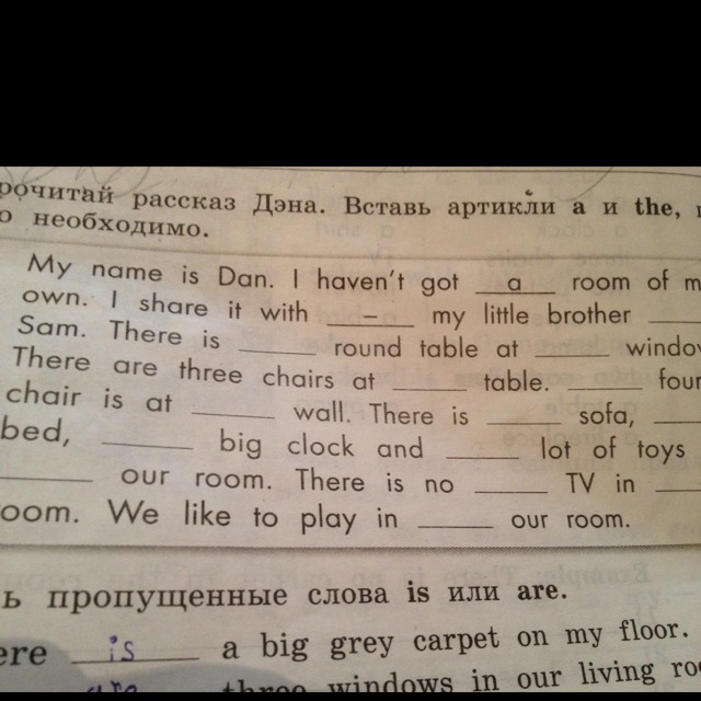 There is A sofa, A bed, A big clock and A lot of toys in - our room.