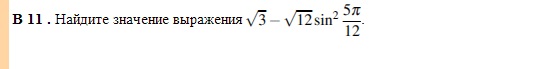 корень из 3 - корень из 12 * ((1-cos 5pi/6)/корень из 4),