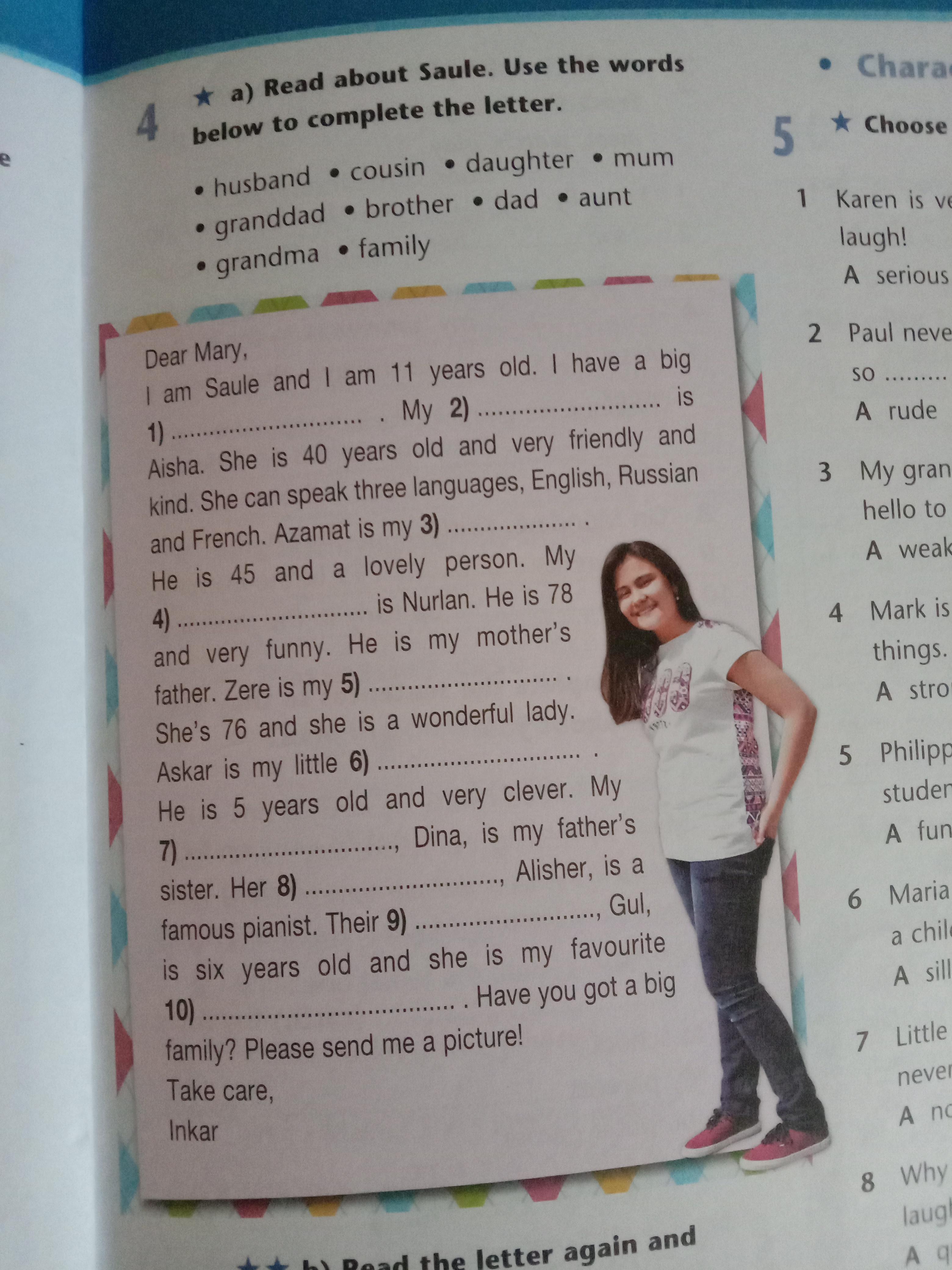 Ответ:1)family 2)mum 3)dad 4)granddad 5)grandma 6)brother 7)aunt 8)husband 9)daughter 10)cousin