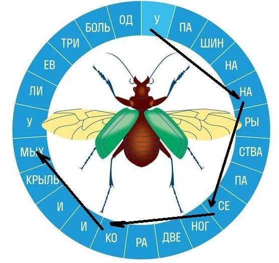 Найди начало головоломки и двигаясь по часовой стрелке и пропуская одинаковое количество слогов, определи что в ней зашифровано