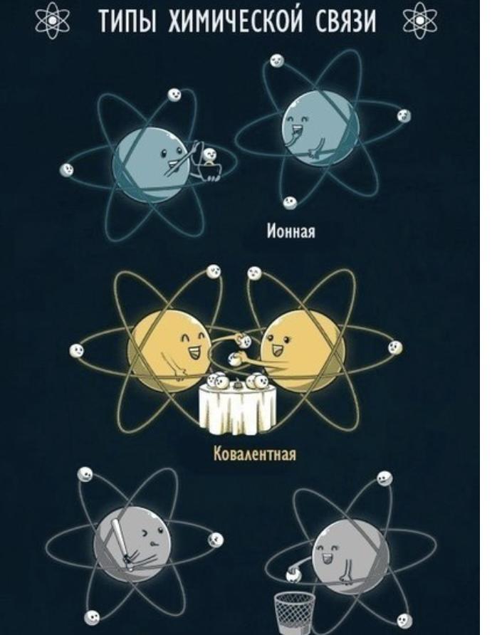 Ионная связь – связь между разноименными ионами, обусловленная их электростатическим притяжением.(1 рисунок, у них нет ничего общего)