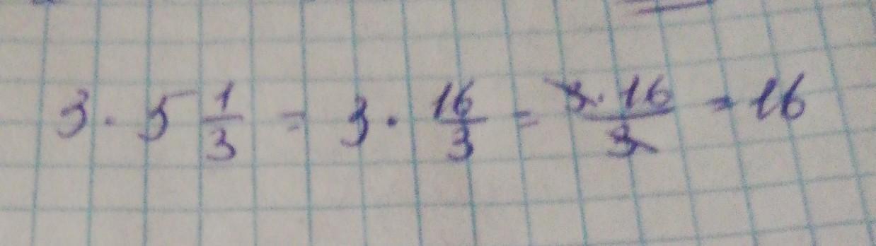 3 * 5 1/3 = 3 * 16/3 = 48/3 = 16