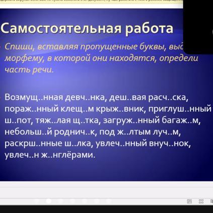 Возмущ/ённ^/ая (прилаг.) девч/`онк^/а (сущ.), деш/`ёва^/я (прилаг.) рас/ч`ёс/ка (сущ., корень чёс-, чешет), пораж/ённ^/ый (причаст.) клещ/`ом крыж`овник (сущ., крыжовник - корень), приглуш/ённ^/ый (прилаг.) ш`ёпот (сущ., шёпот - корень, шепчет), тяж/`ёл^/ая (прилаг.) щ`ётк/а (сущ., корень щётк-, щетина), загруж/енн^/ый (прилаг.) багаж/`ом (сущ.), небольш/ой (прилаг.) роднич/`ок^, под ж`ёлт/ым (прилаг., корент жёлт-, желтеть) луч/`ом, раскраш/енн^/ые (прилаг.) шелк/а (сущ., корень шёлк), увлеч/ённ^/ый (прилаг.) внуч/`онок^, увлеч/ён^ (кр.причастие) жонглёр/ами (сущ., корень жонглёр).