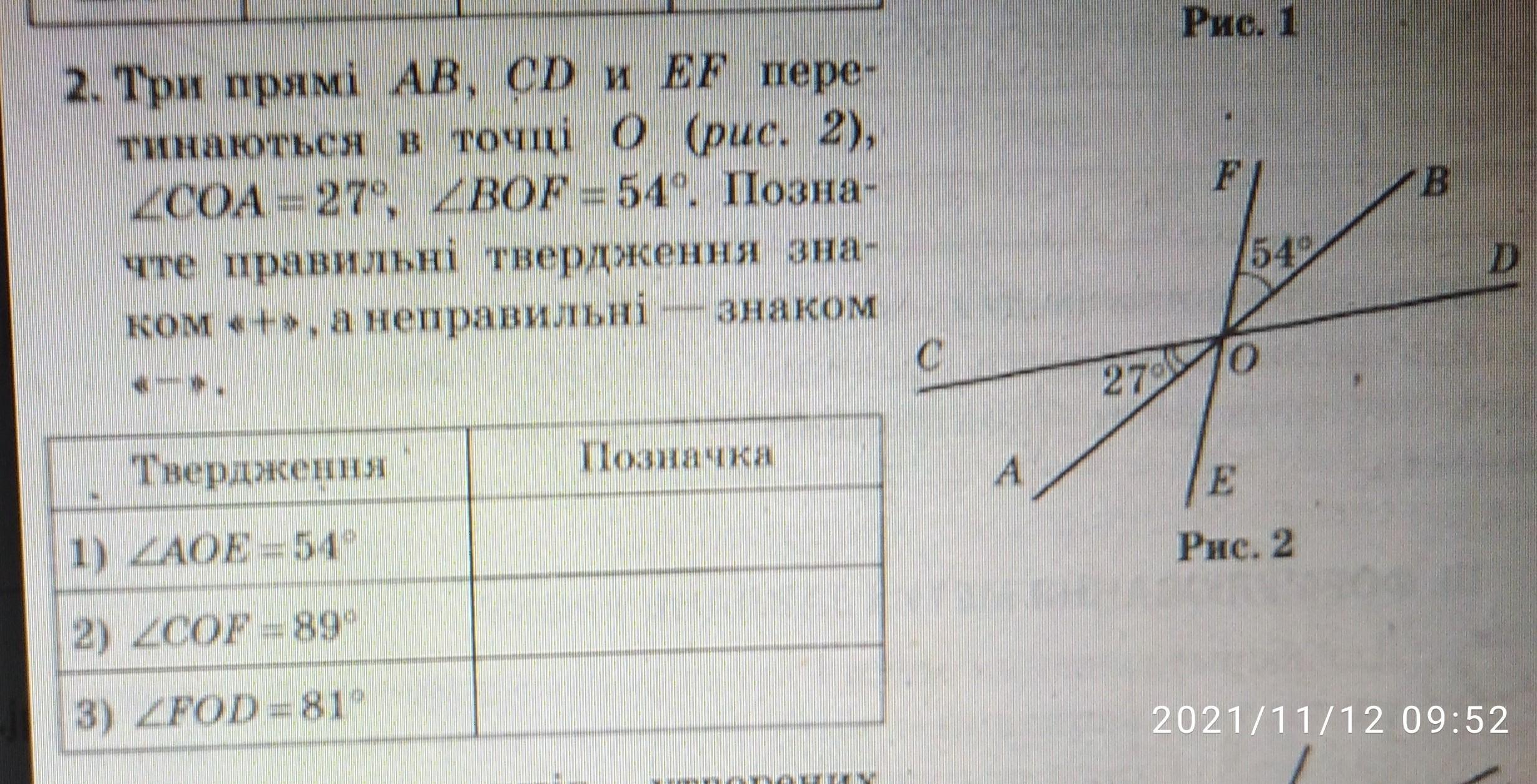 2)∠COF = 180 - 27 -54 = 99°