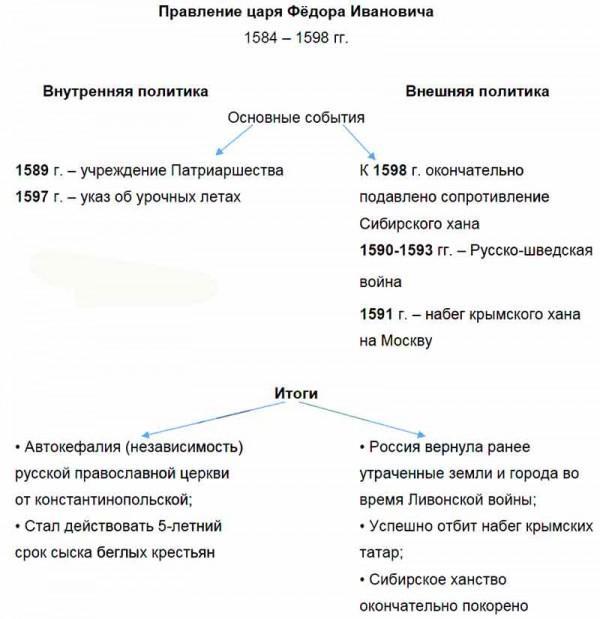 выпишите годы правления и основные направления деятельности Федора Ивановича (в две колонки: внутренняя политика и внешняя политика) в конце вывод об оценке его политики