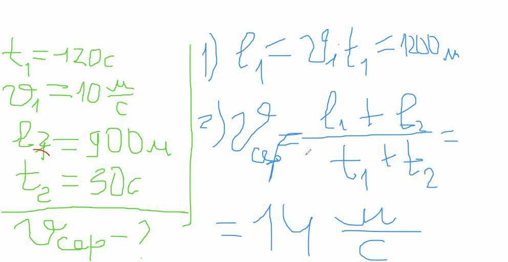 Мотоцикліст рухався 2 хв зі швидкістю 36 км/год а потім проїхав ще 0.9 км за roa 0,5 хв. Чому дорівнює середня швидкість руху мотоцикліста?
