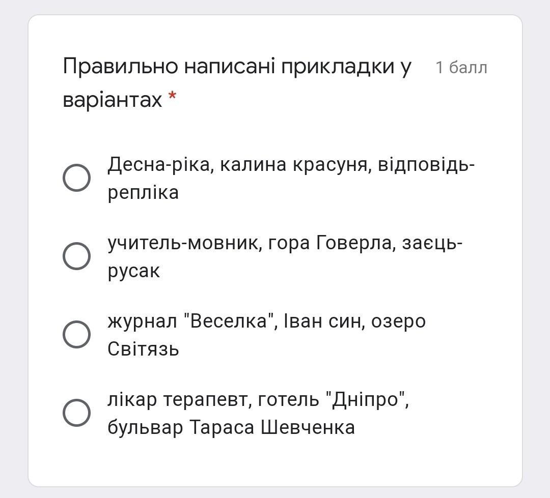 2 ответ( учитель -мовник , гора-Говерла, и т.д)