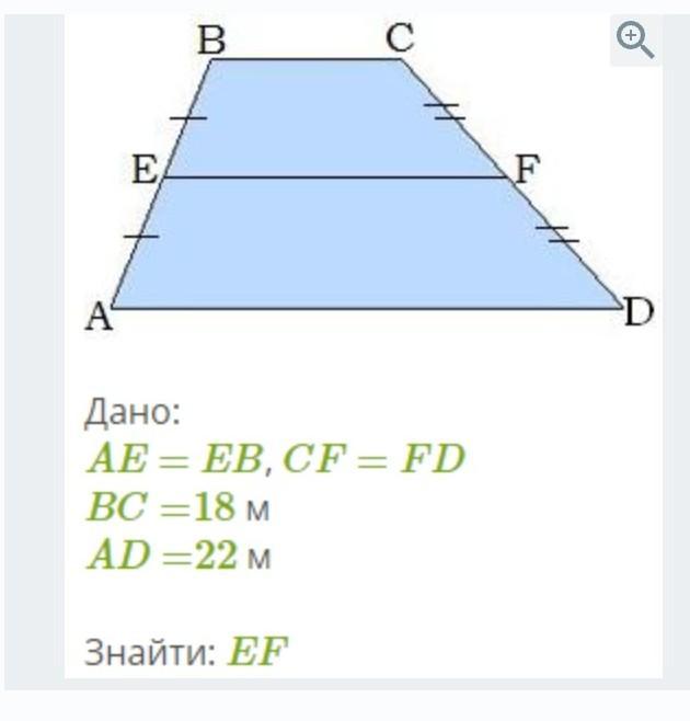 20, средняя линия трапеции равна полусумме оснований: (18+22)/2=40/2=20