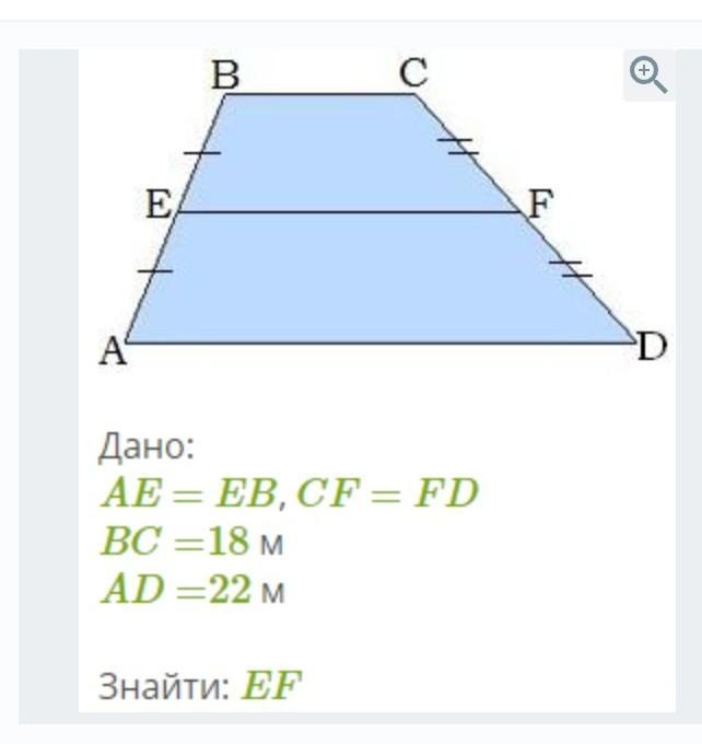EF=1/2(BC+AD)=1/2(18+22)=20см