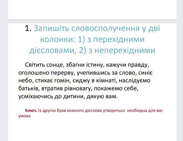 запишіть словосполучення у дві колонки 1)з перехідними 2) з не перехідними