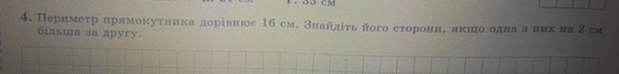 периметр прямокутника доривнюе 16 см Найдите его стороны если 1 из них на 2 см бильша за другу
