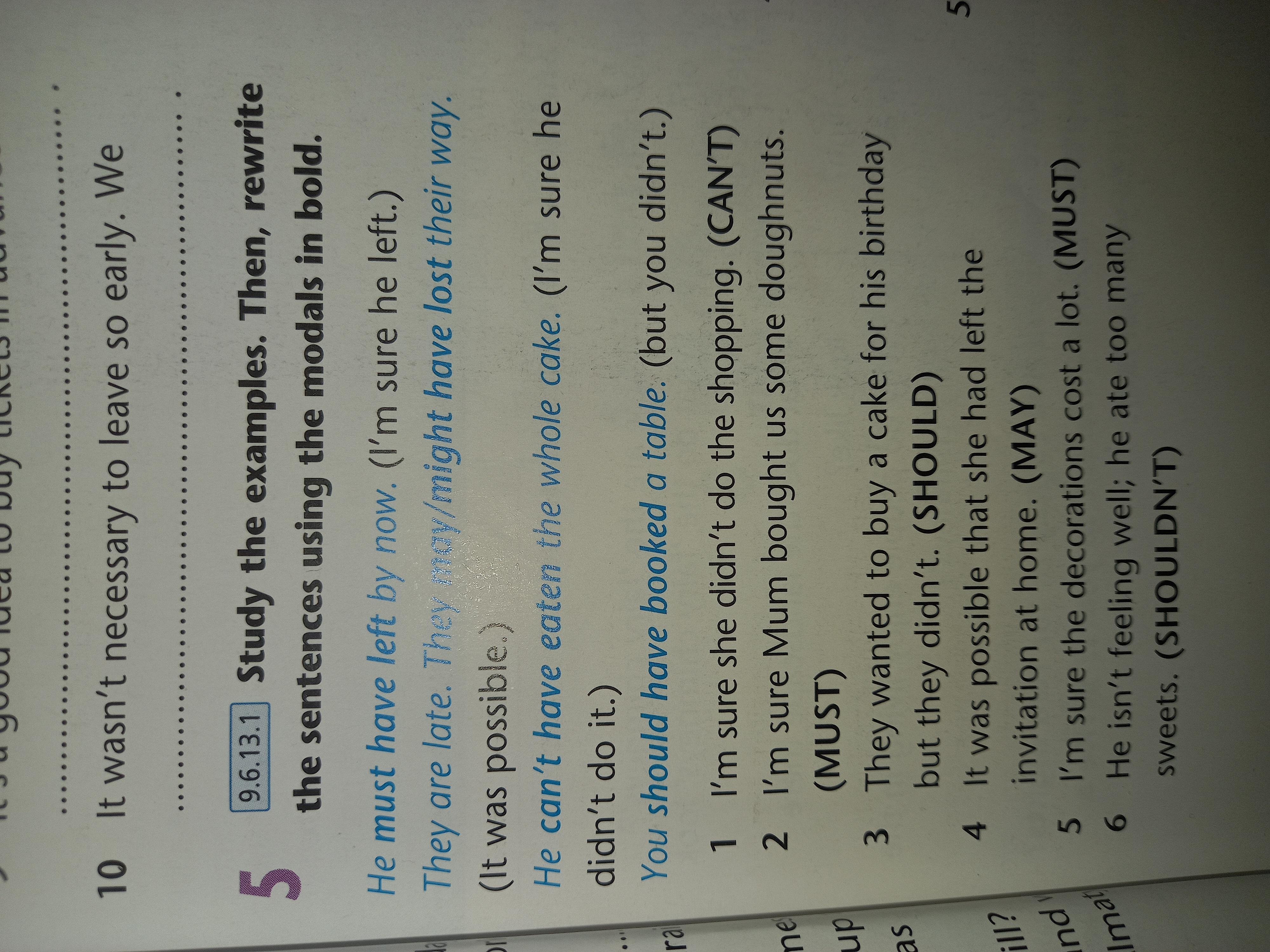 • 4 It was possible that she had left the invitation at home. (MAY) •5 I'm sure the decorations cost a lot. (MUST)