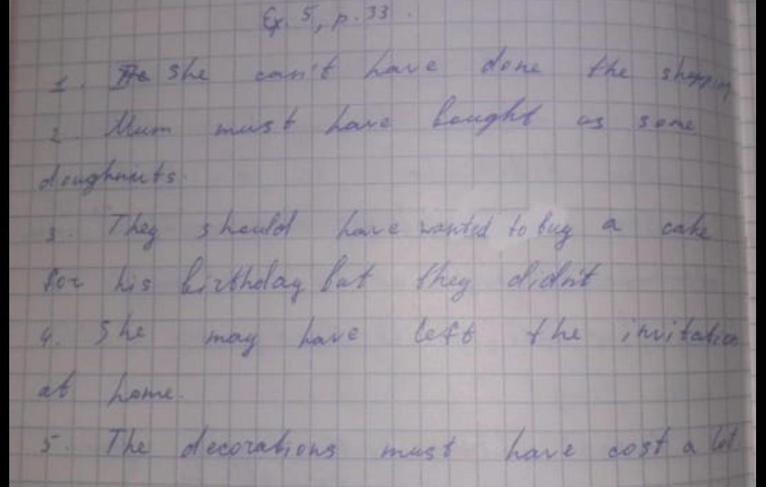 •3 They wanted to buy a cake for his birthday but they didn't. (SHOULD)