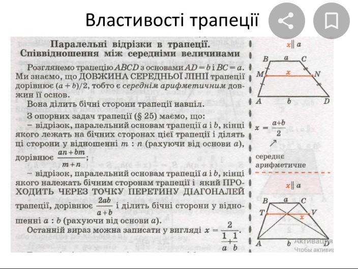 середня лінія трапеції - це відрізок ,що сполучає середини бічних сторін цієї трапеції