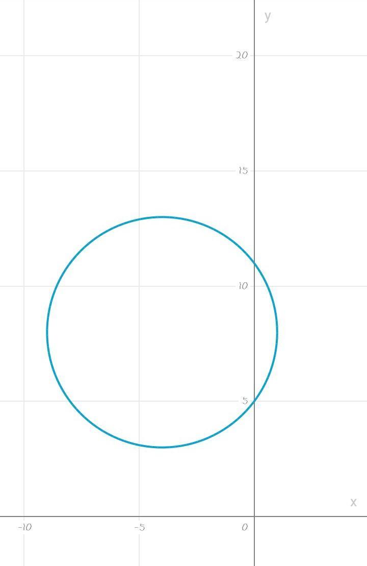 Складіть рівняння кола з центром у точці (-4 8) радіус дорівнює 5