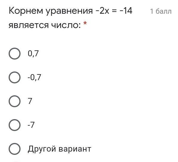 Корнем уравнения -2х = -14 является число: