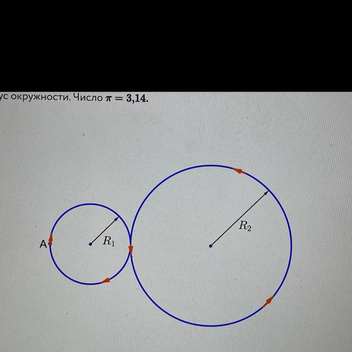 Определите радиус R1 малой окружности. Ответ выразить в см , округлив до десятых.