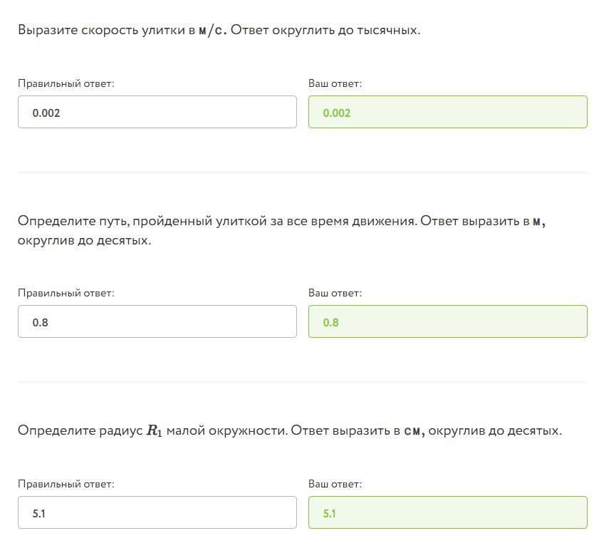 большой окружности в 2 раза больше радиуса R1 малой. Скорость улитки постоянна по