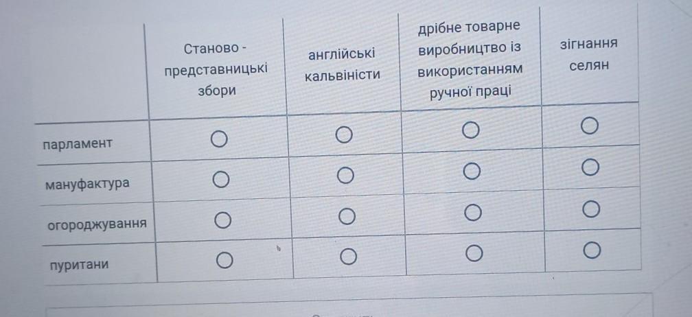 - / 2 баллов Станово - зігнання дрібне товарне виробництво із використанням ручної праці англійські кальвіністи представницькі збори селян О парламент мануфактура огороджування пуритани