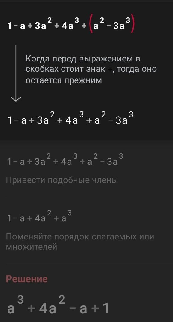 1-а+3а^2+4а^3+(-а^2-3а^3)=